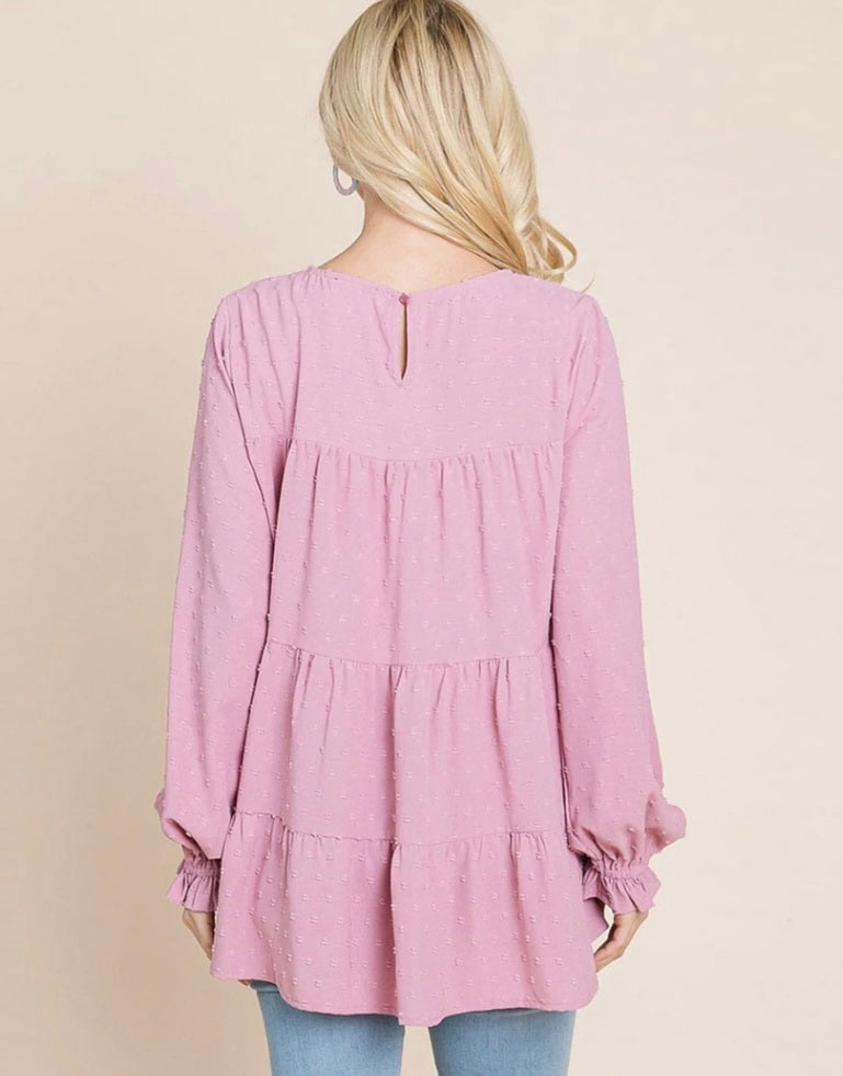 WOMEN'S LONG SLEEVE TIERED TUNIC SWISS DOTS BLOUSE