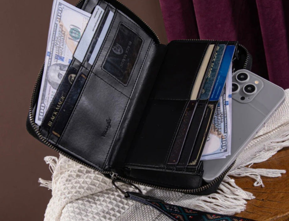 Interior credit card slots, window ID, and bill compartments